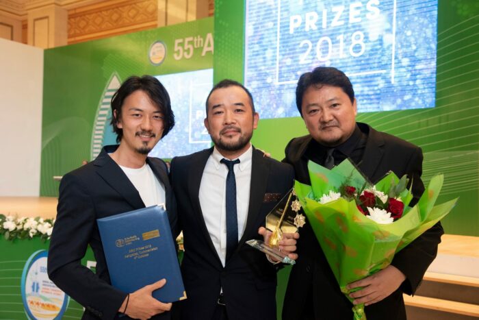 授賞式はトルクメニスタンの首都アシガバートにある商工会議所で、現地時間10月4日夜に行われ、WOWOWから太田慎也チーフプロデューサー、大野丈晴プロデューサー、中島悠ディレクターの3名が出席した。
