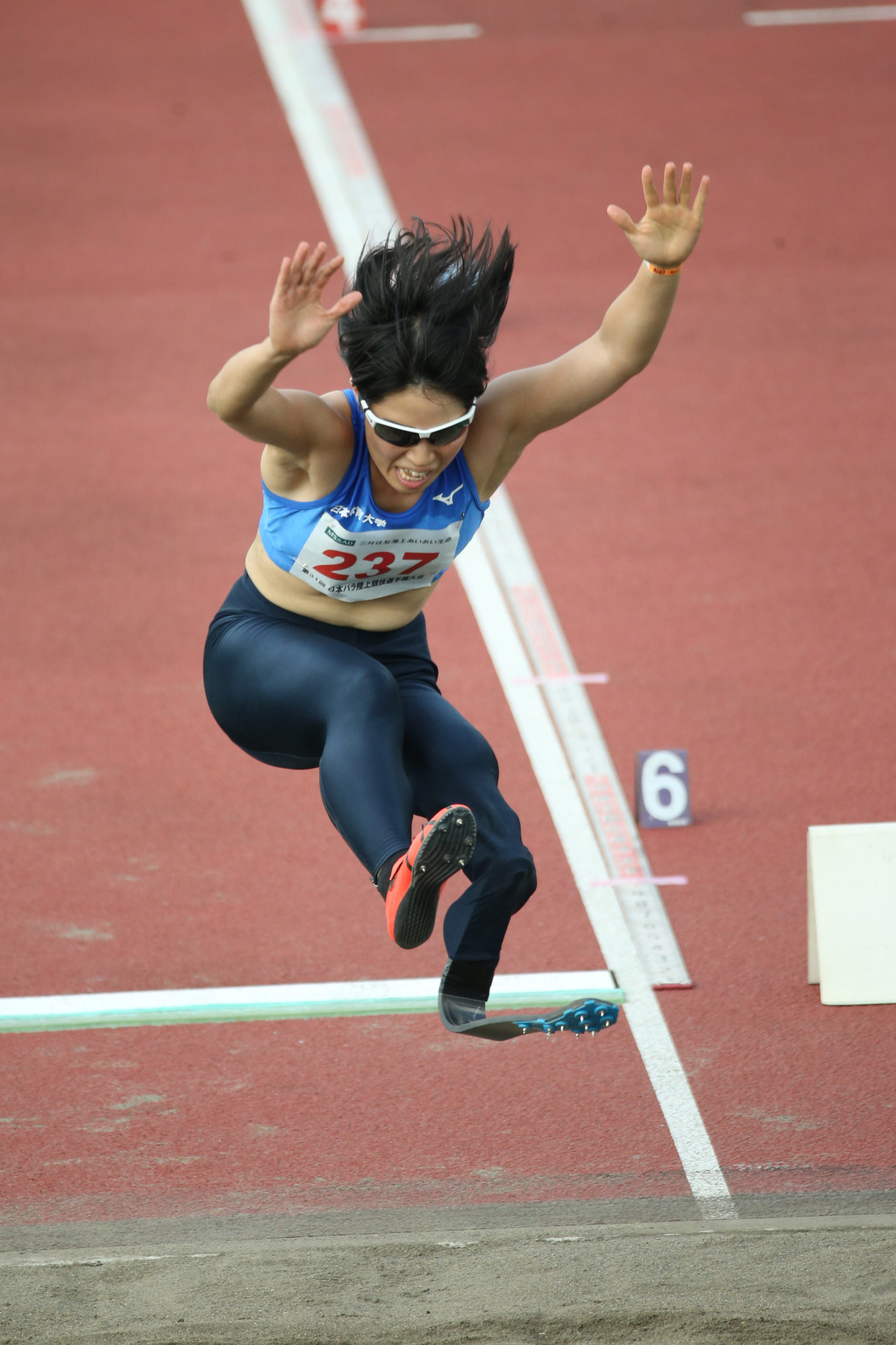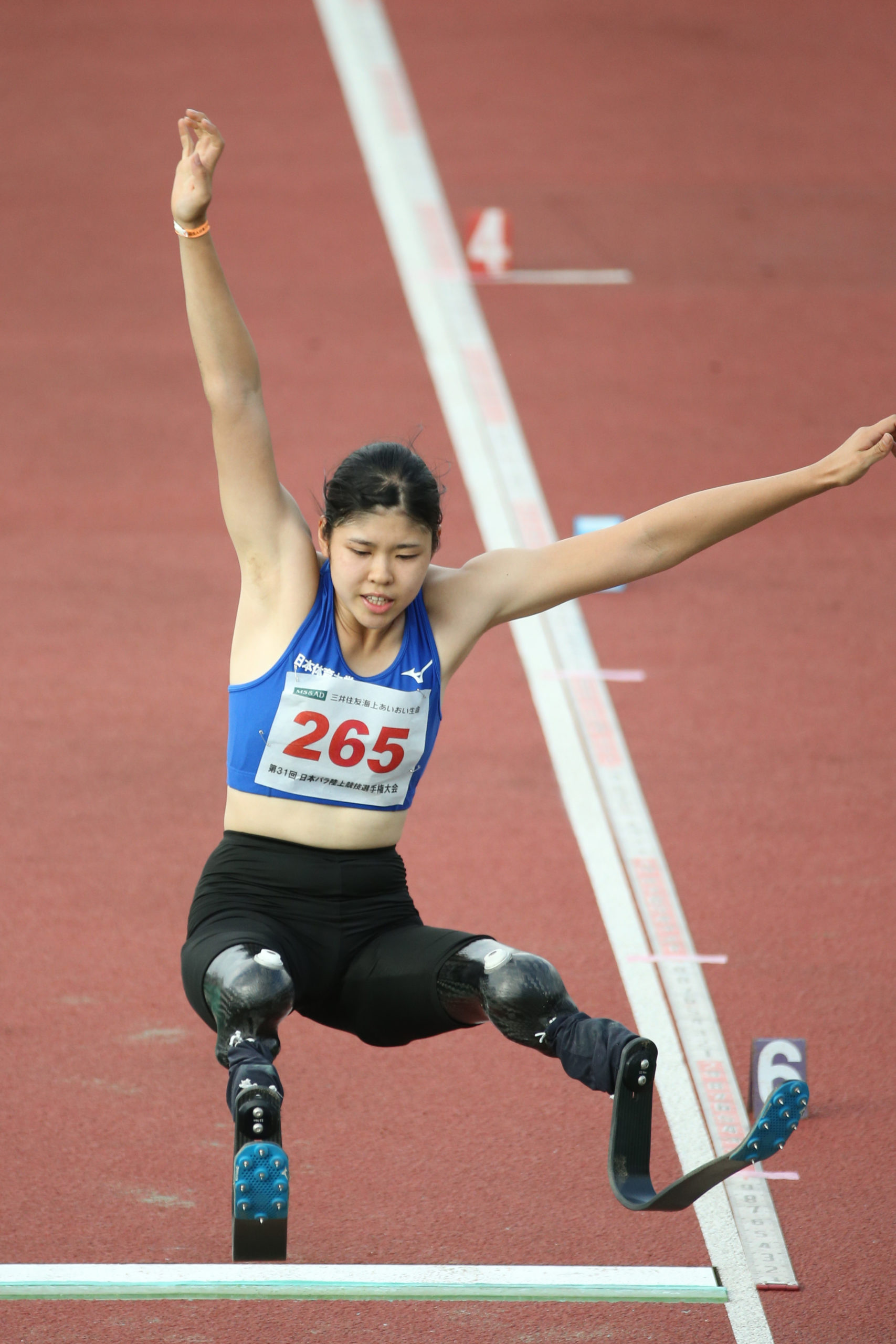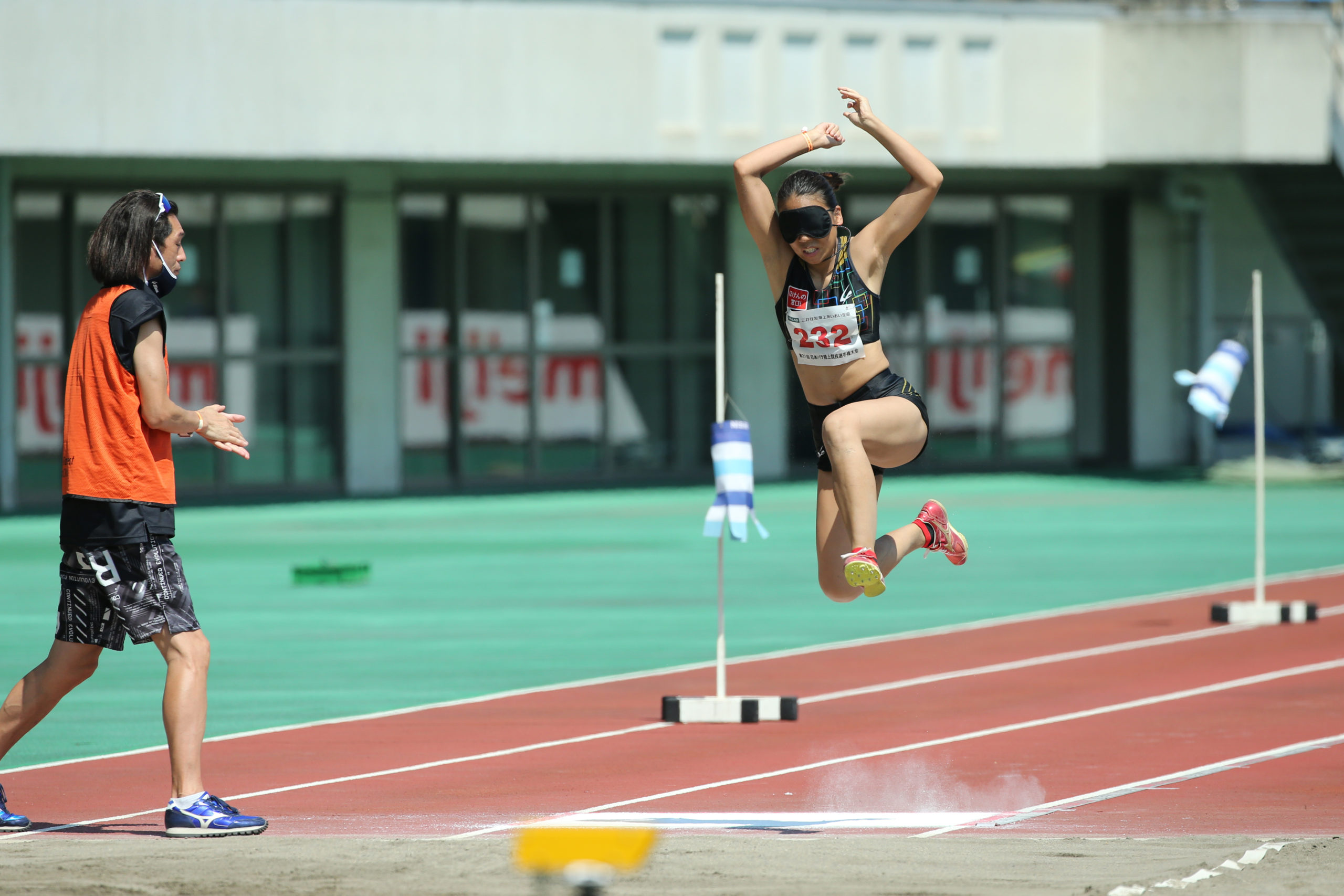 女子走り幅跳びT11の高田千明(ほけんの窓口)は1回目の跳躍で4m46をマーク。自身が昨年刻んだ4m69には届かなかったものの、「今回の試合は今まで習ってきたことをひとつずつ噛み合わせるつもりで臨んだ。助走が左に逸れてしまうことが続いていたので、まずはしっかりと踏切の態勢に入ることを目標にしていた。踏み切った後の空中での動作が噛み合えば、まだ距離は出る」と手応えを語った。緊急事態宣言下の1ヵ月半は競技場が閉鎖し、夜間の公園などで練習を積んでいたという。不安定な練習環境の中「今日は他の選手の話も聞けて良かった」と、仲間との交流を喜んだ。