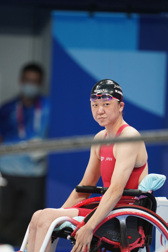 8月30日、東京パラリンピック競泳6日目。女子50m背泳ぎを47秒86で泳ぎ終えた成田真由美(S5:運動機能障害/日本テレビ放送網)は、メディアの前に現れ「ぎりぎり決勝に残ることができて、予選よりはタイムも順位も上げることができすごく良かったと思いました」と、いつもどおりレースの感覚やタイムへの満足度を報告した。