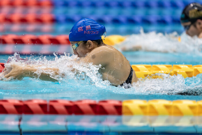 兵庫県選手権では(パラも健常も)一緒に組まれていて、泳ぐ側としては普段一緒に泳げない選手と一緒に泳げるし、エントリータイム順に並ぶので自分のタイムに近い選手が両隣に並ぶというのは、やっぱり泳ぎやすいと思います。ジュニアの頃はよく健常の大会に出場していました。両隣の選手と競り合いながら生まれる記録もあると思うので、記録が出やすい環境にもなると思います」