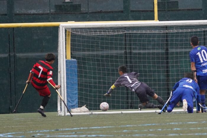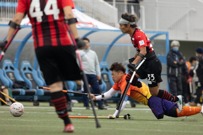 アンプティサッカーとは下肢障害者のフィールドプレーヤー6名と上肢障害者のゴールキーパーの7人制競技であり、フィールドプレーヤーはクラッチを使って上半身を支えてプレーする。通常は前後半25分の試合時間で行われるが、今大会はコロナ禍と参加者数が通常より少なかったこともあり、決勝戦のみ前後半25分、そのほかの試合は前後半20分で行われた。