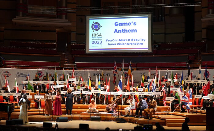 バーミンガム(イギリス)のシンフォニーホールで「バーミンガム2023 IBSAワールドゲームズ」の開会式が行われた。客席には世界から視覚障害のある選手があつまり、非常にリラックスした雰囲気の中で執り行われた。