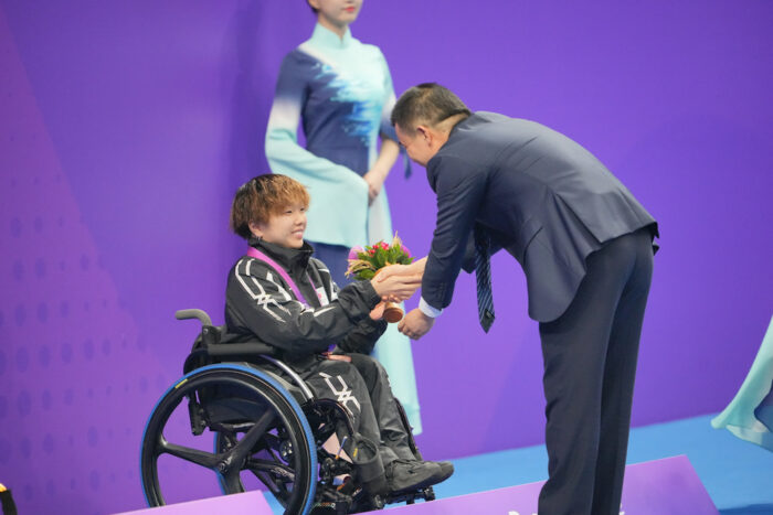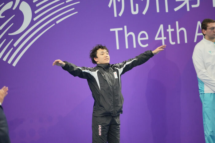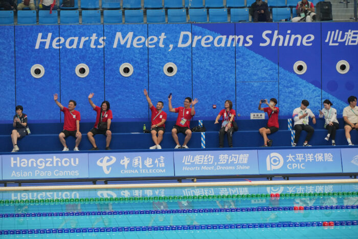 10月24日、杭州アジアパラ競技大会、水泳2日目。日本代表チームはリレーを含む金7、銀4、銅3合計14個のメダルを獲得した。
