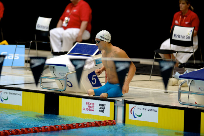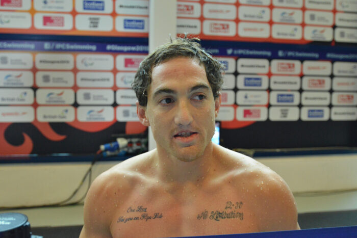 2013年ロンドンパラリンピック、男子200メートル個人メドレー銀メダリスト、ガルシア・トルソン・ルディ、26歳。アメリカ、西海岸の出身。グラスゴー2015IPC水泳世界選手権の会場でお会いした。いちど、横浜でのトライアスロンのエントリーリストに名前が載り、パラトライアスロン関係者、とくに重度の切断のある選手のあいだで話題となった。両足義足でさまざまな競技に挑戦する、まさにルディは、「マルチパラアスリート」である。