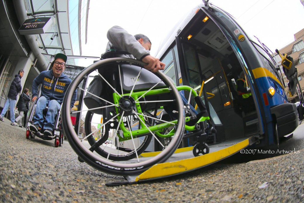 公共バスで移動中