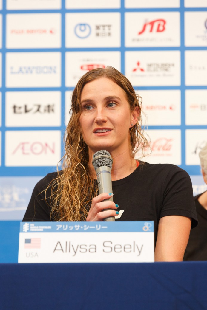 5月11日、パラトライアスロンの記者会見でのシーリー 写真・内田和稔