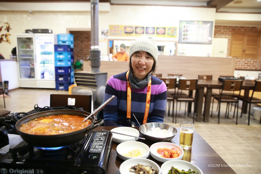 取材初日、華やかな入村式を終えて、宿舎の前の焼肉屋さんで一休み。