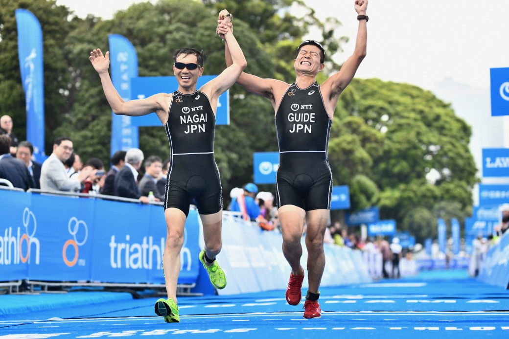 フィニッシュする長井敬二(エイジパラ・TRI6 写真・山下元気