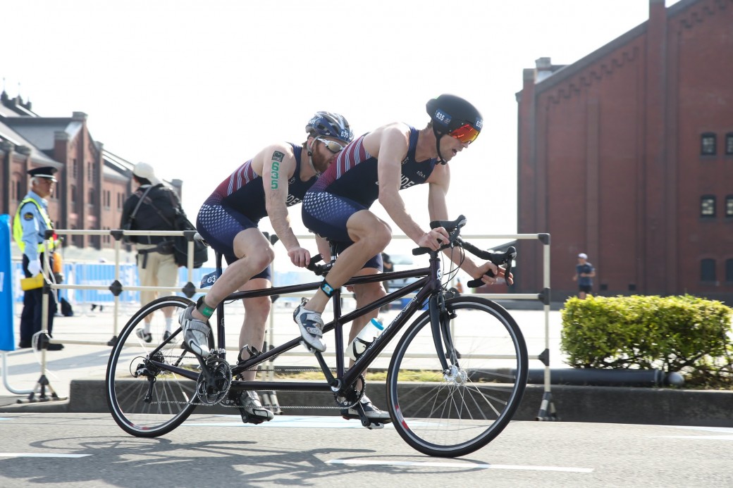 赤レンガ前でのバイクパート。ブラッド・スナイダー(PTVI/アメリカ) 写真・内田和稔