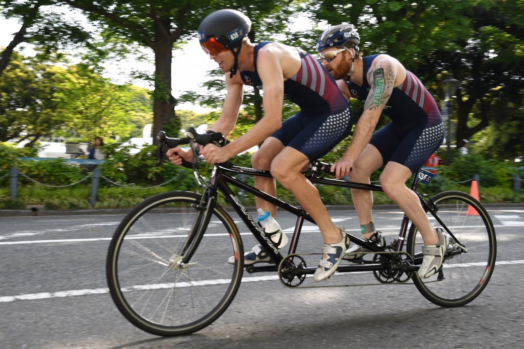 男子PTVI5位。アメリカのスイムチャンピオン・ブラッド・スナイダーのバイク/山下公園前 写真・矢野伸夫
