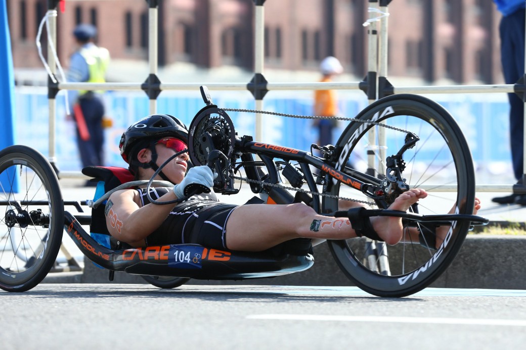 バイクは39分01秒の好タイム。「横浜の地で沿道の皆さんの応援が力になった」 写真・内田和稔