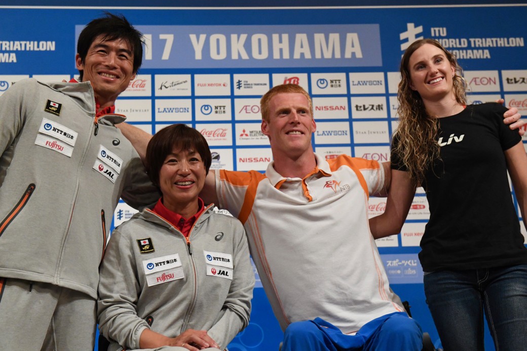 昨年の横浜トライアスロンに初めて出場、大型新人の出場ということで記者会見に出席した土田和歌子 写真・佐々木延江