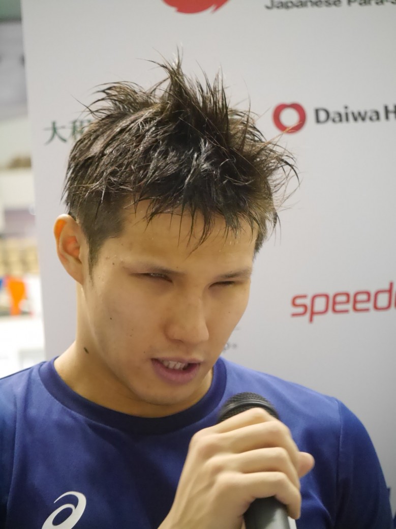 ミックスゾーンでの木村敬一 写真・望月芳子