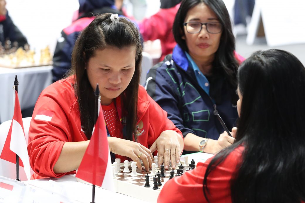 インドネシアで盛んなチェス。会場に設置されたモニターをじっくりと観ていました。