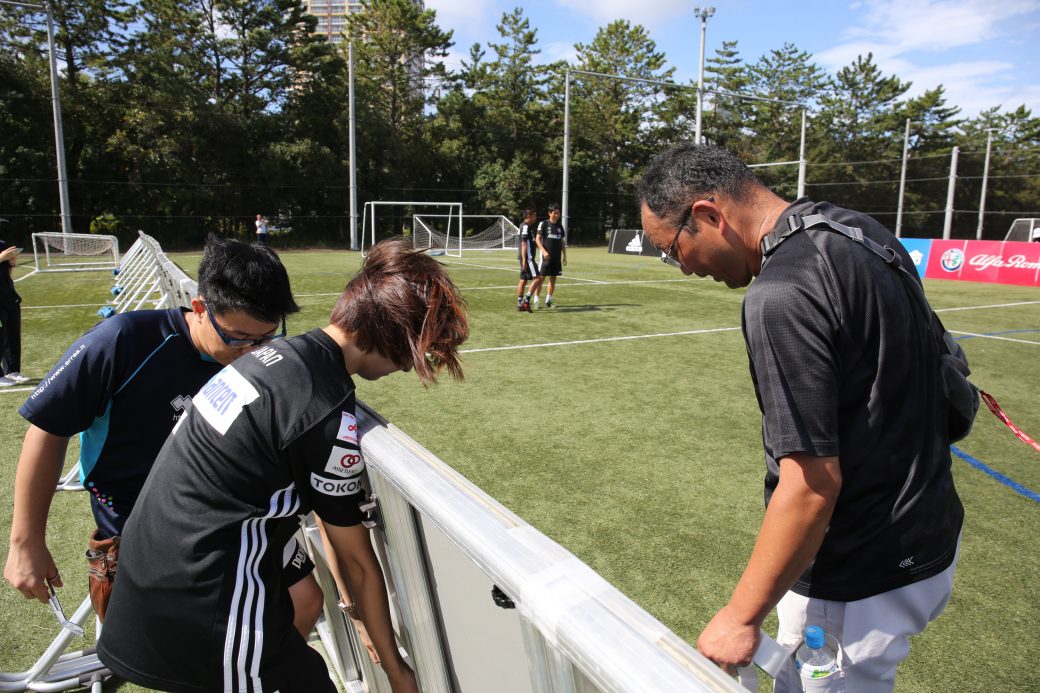 練習場の準備をするボランティアスタッフ