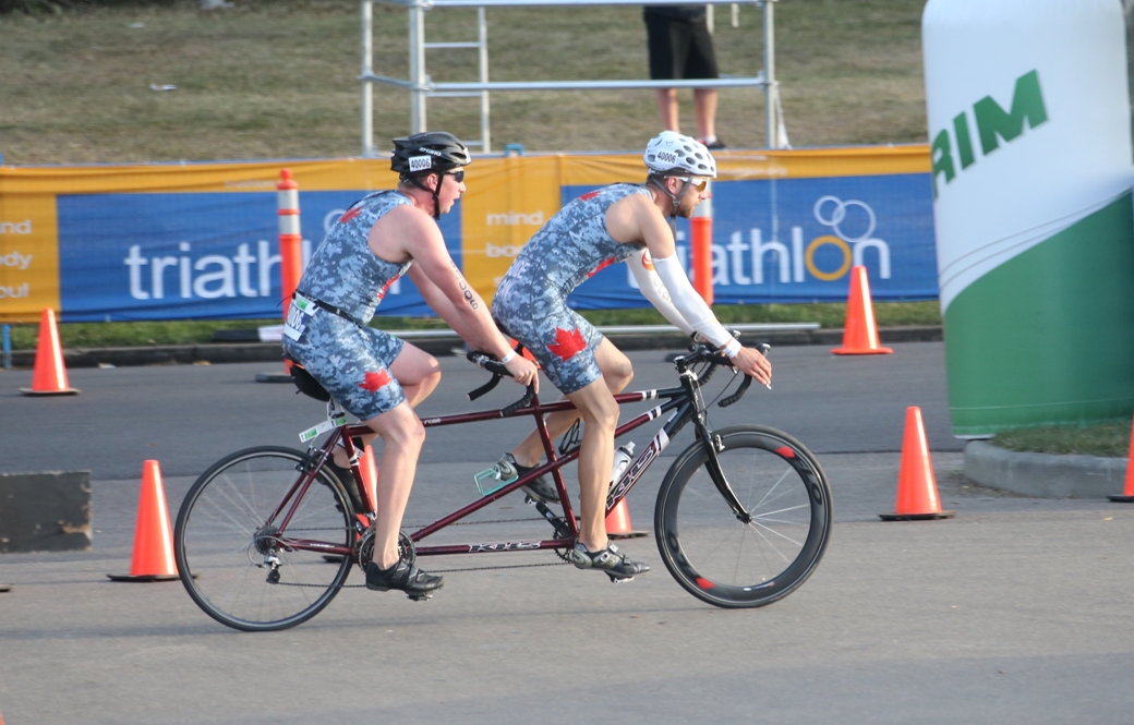 トップでスイムからバイクへトランジットを終えたのはカナダのPT5(視覚障害)の選手
