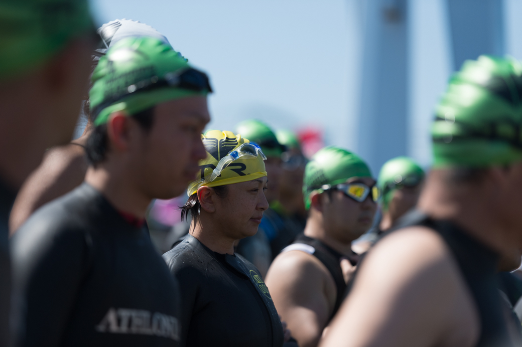 2014年、横浜八景島でのトライアスロンでアクアスロンをスタートする円尾(山田)敦子 写真・佐々木延江