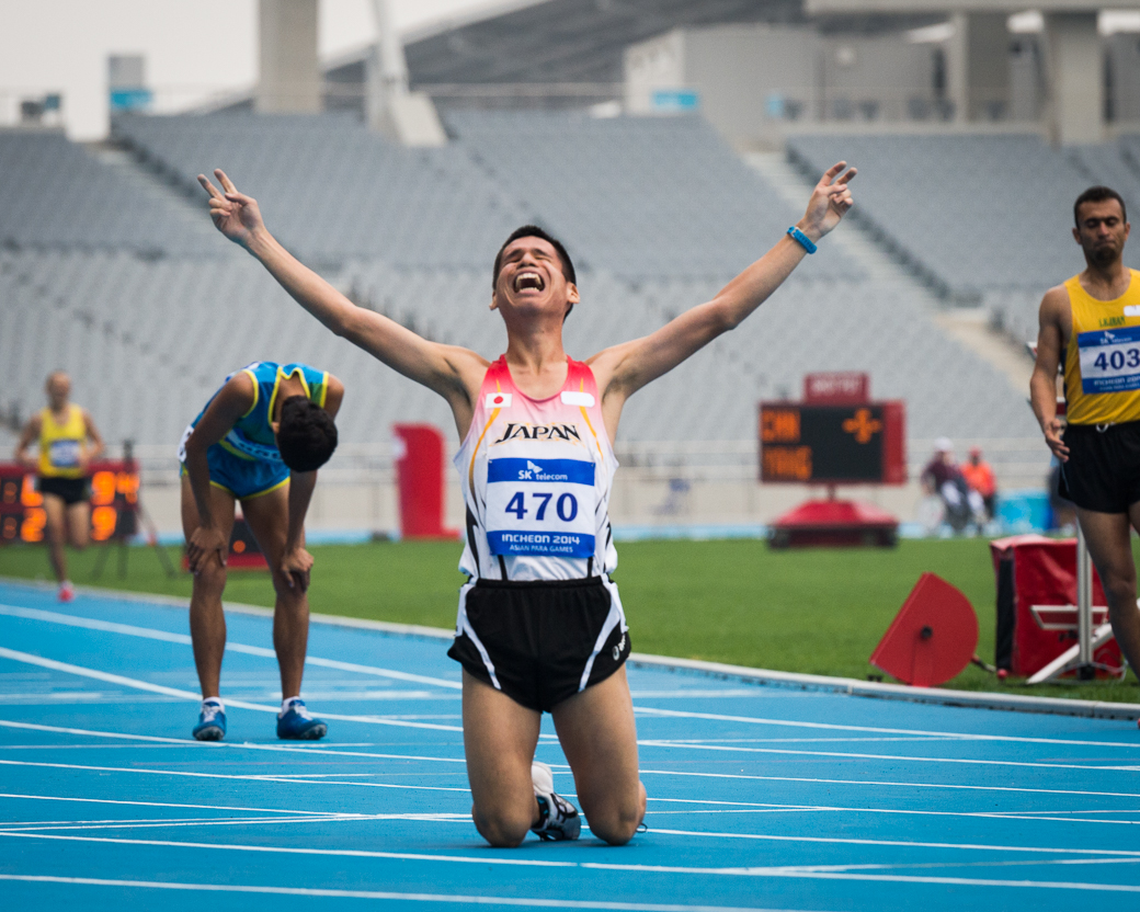 堀越信司(26歳・NTT西日本)1500M、T12のゴール後、満足のいく走りができた堀越の表情が輝いていた