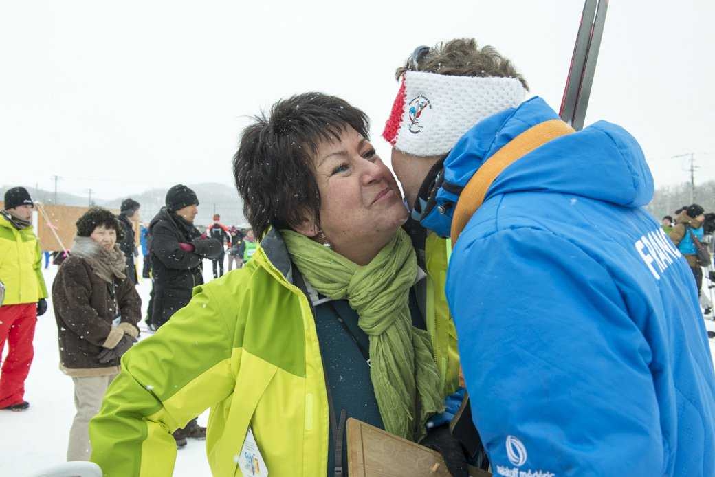 フランスから来たボランティアのミリアムさん(左)とフランス選手