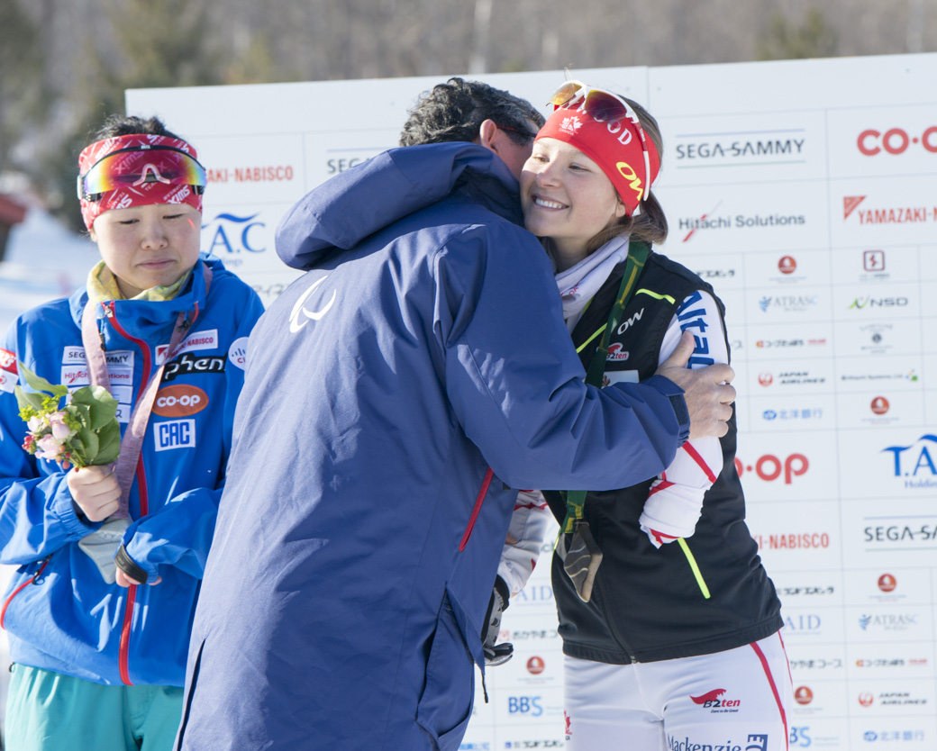 女子スタンディングクラスの表彰式。プレゼンターはIPC理事・山脇康さん