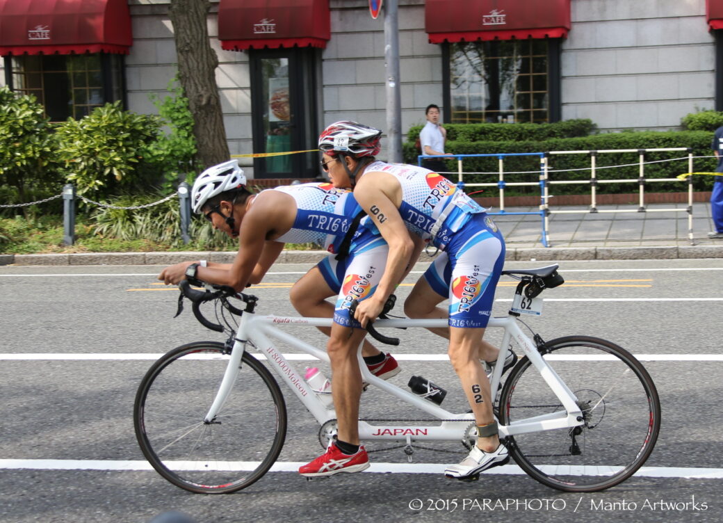 5月17日・横浜大会エイジパラの部に出場した、長井敬司とガイドの田中相司のバイクパート (写真:中村真人)