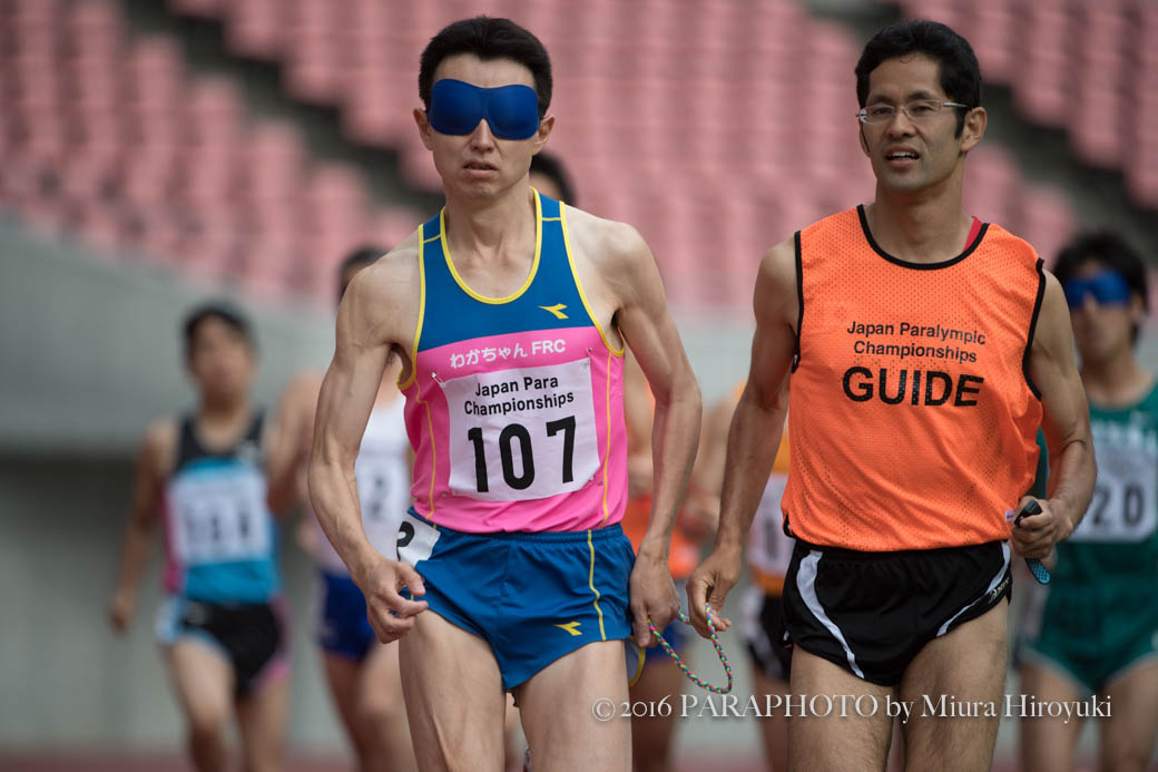 1500メートル・T11和田伸也(左)ガイド田中崇志(JBMA)