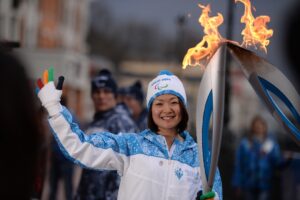 夕方から、トーチリレーの聖火を掲げたトーチセレモニーが市街の会場で行なわれた。アートカルチャーセンター