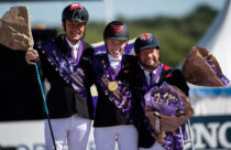 Silver PEPO PUCH (L) of Austria, gold KATRINE KRISTENSEN of Denmark and bronze LEE PEARSON of Britain after the Grade II first qualifier for individual freestyle final during Orifarm Healthcare FEI Para Dressage World Championship 2022 in Herning, Denmark, August 10, 2022. 写真:FEI