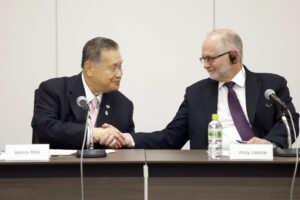 左から、高橋秀文(日本パラリンピック委員会常務理事 副委員長)、大槻洋也(日本代表選手団団長/日本パラリンピック委員会強化委員長)、櫻井誠一(日本代表選手団副団長/日本パラリンピック委員会 副委員長) 撮影・三浦宏之