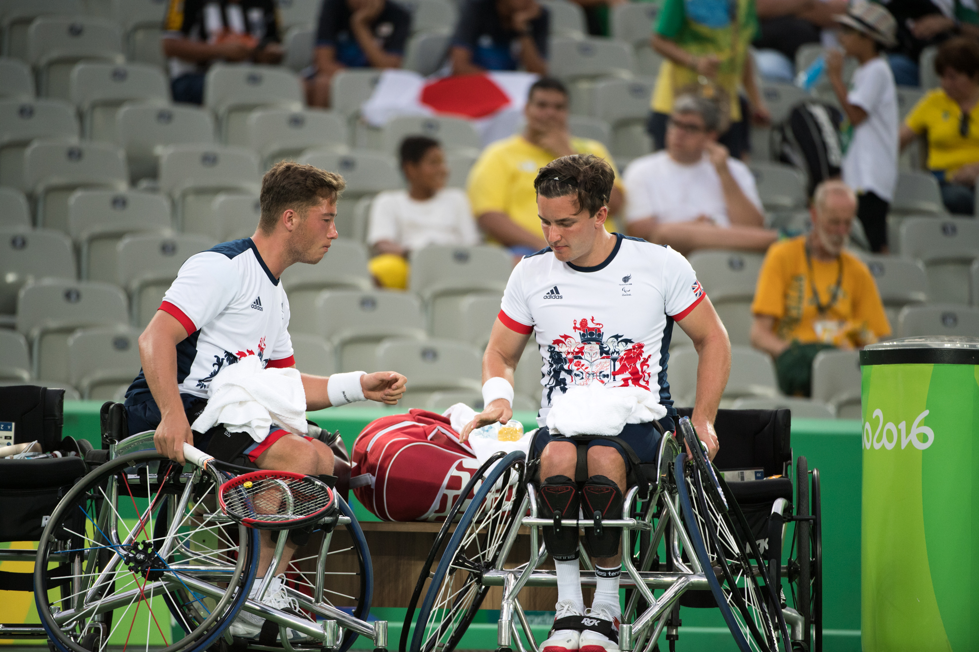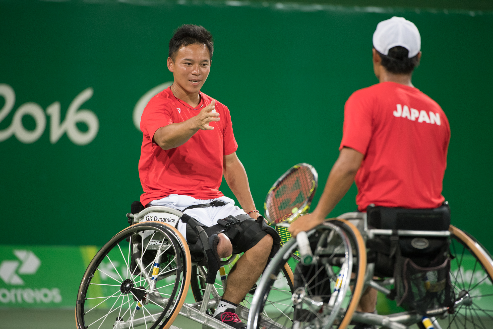 試合後国枝は、「(イギリスペアが)すごい勢いだったのでビックリしましたね。相手の攻撃的なテニスにこちらも打ち合うしかないと思い、二セット目からは打ち合えてたんですけど、やっぱりグランドスラムとってるペアっていうのは強いですね。若さの勢いってのがありました」と今日の試合を振り返った。国枝は同日に行われたシングルス準々決勝でもフランスのステファン・ウデに敗れており、リオパラリンピックでの試合は明後日行われるダブルス3位決定戦を残すのみとなった。