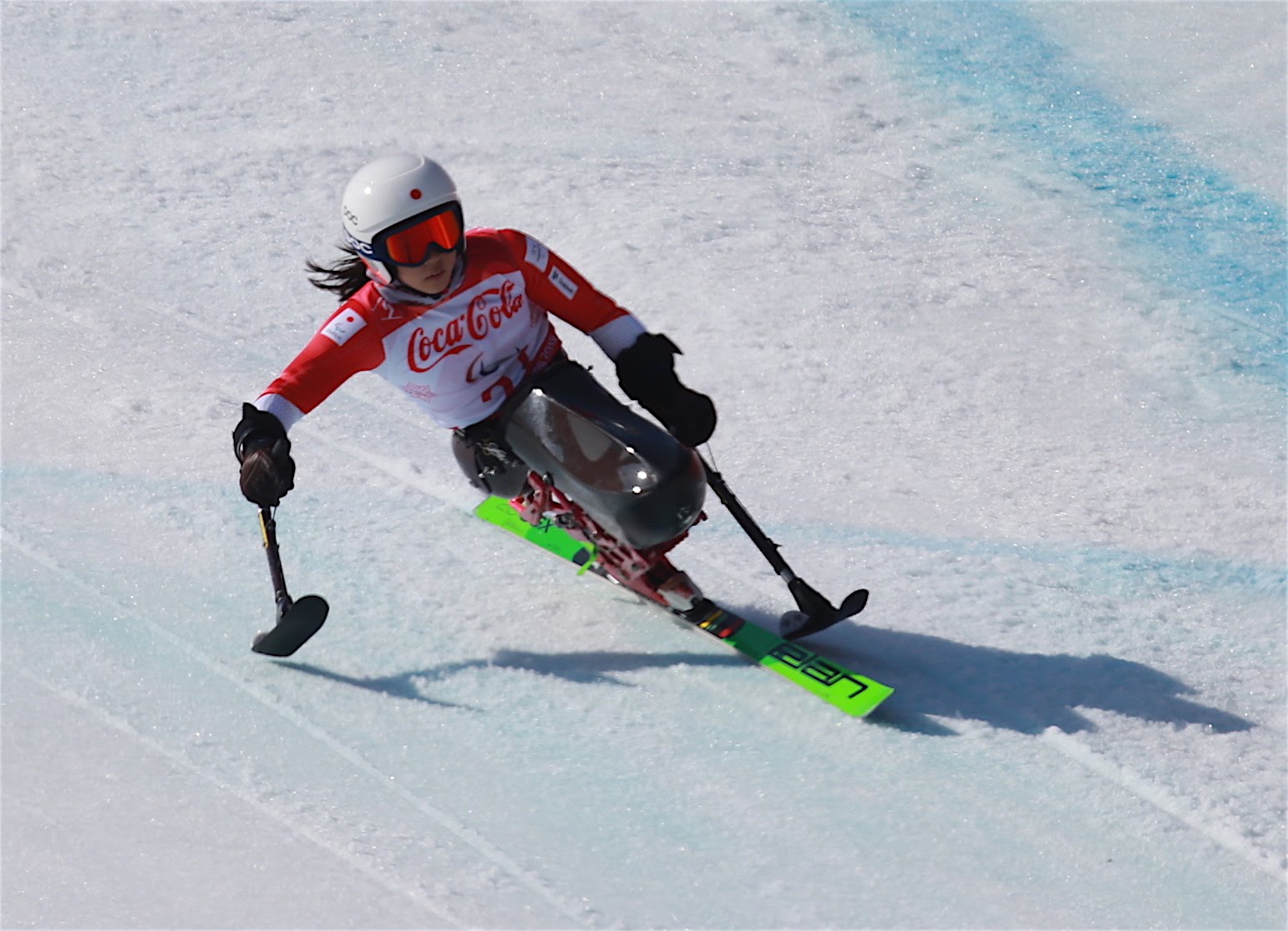 平昌パラリンピック1日目に行われたアルペンスキーダウンヒル(滑降)座位で銀メダル、2日目のスーパーG(大回転)で銅メダルを獲得した村岡桃佳。
