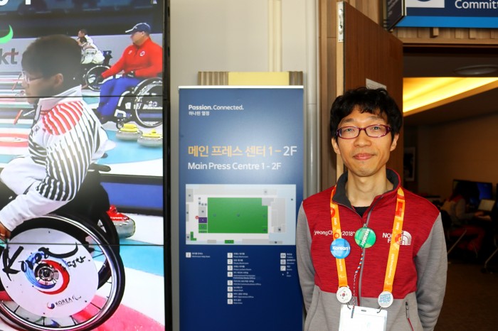 コン・ソンイルさんは、そんなボランティアスタッフの一人だ。コンさんの平昌パラリンピックでの仕事は、メイン・プレスセンターにおける言語ヘルプサービス。つまり、言語の壁をなくす為のボランティアである。対応言語は韓国語と日本語。オリンピック開催期間は選手村で同様の業務にあたった。両大会合わせて約2ヶ月もボランティアに従事できたのは、今が“春休み”だからだ。