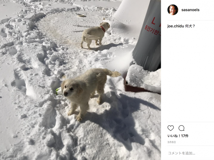 ベースキャンプのあるメダルプラザ近くの宿舎の前の焼肉屋さんの犬。