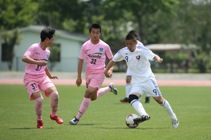 試合は前日よりも早い栃木SCユースのプレースピードについて行けるのかと不安になる。しかし、日本代表の選手たちは置いて行かれることもなくしっかり栃木SCユースの攻撃を跳ね返した。開始13分には安達選手が強烈なミドルシュートをはなったが先制点にはならなかった。