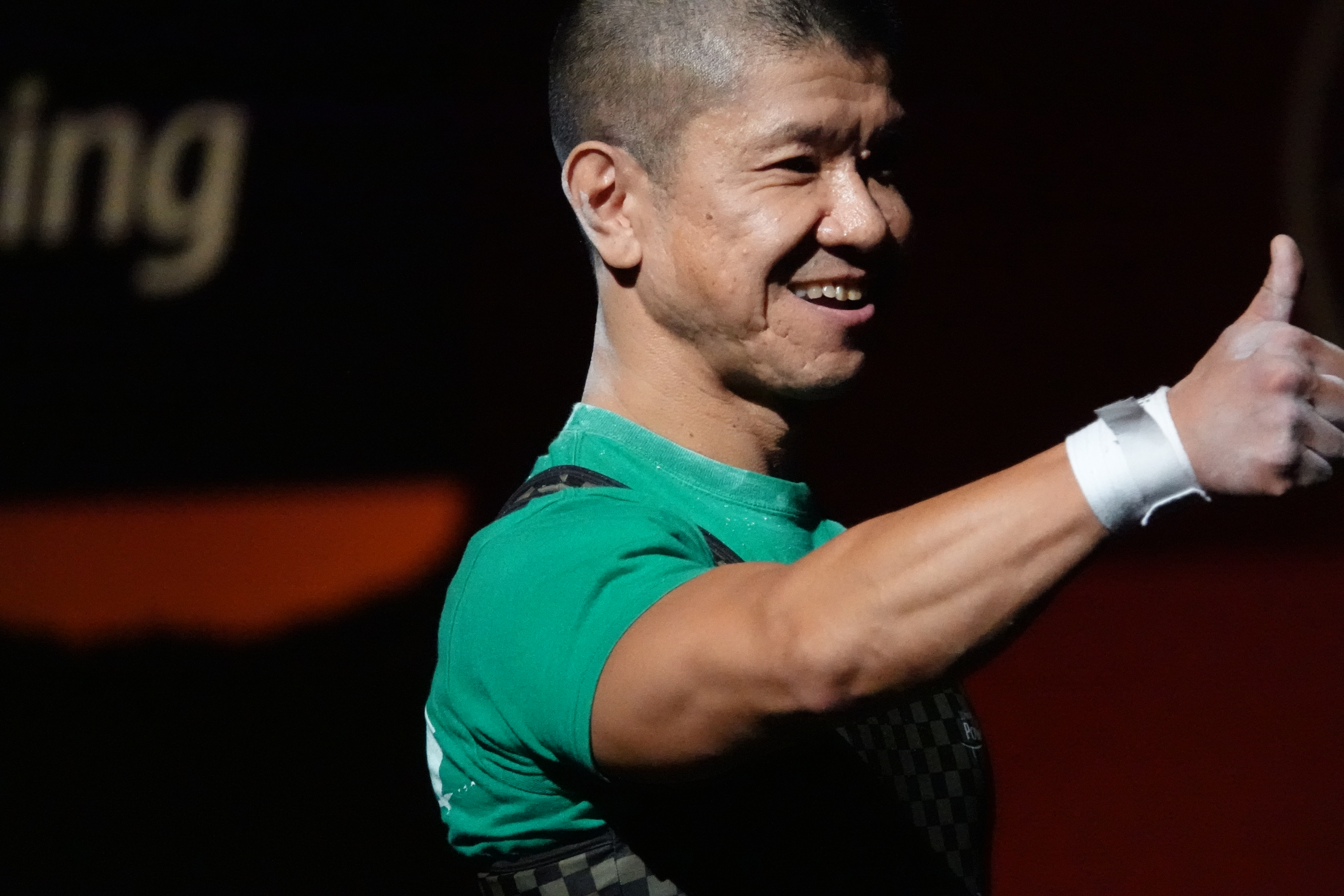 男子54㎏級には、西崎哲男(乃村工藝社)が登場。2回目で132㎏に成功すると、3回目は8㎏も重量を上げて140㎏に挑戦。しかし失敗に終わり、6位だった。