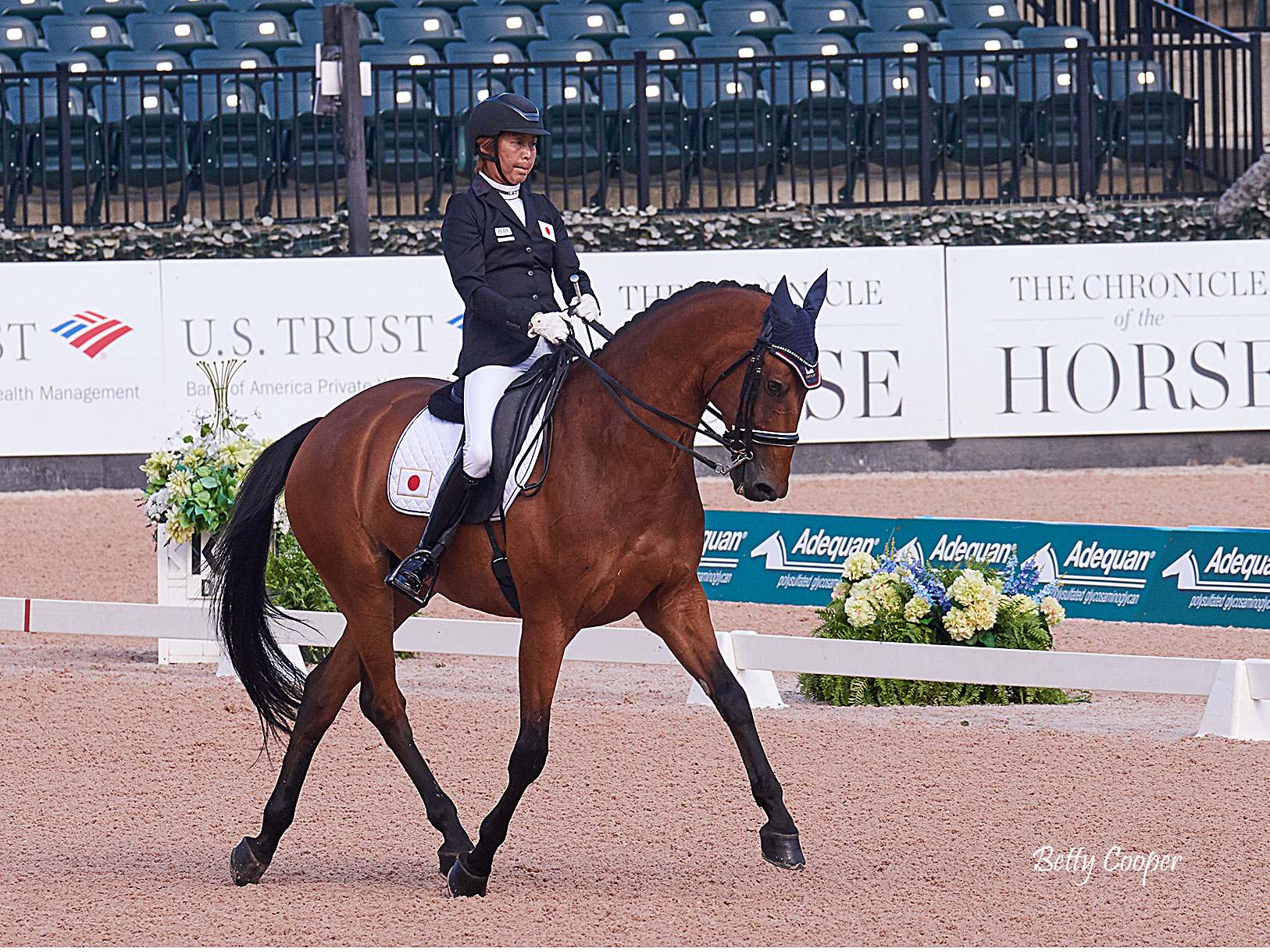 日本からこのグレードには高嶋 活士&Emora C. VD Wijdewormer(9歳 / 牝 / KWPN )が参戦。途中図形の形成や駆歩演技部分などで4点がつくところがあったものの、残りは7点台が付く演技も見られ、初めての世界選手権では上々の63.659%を記録した。