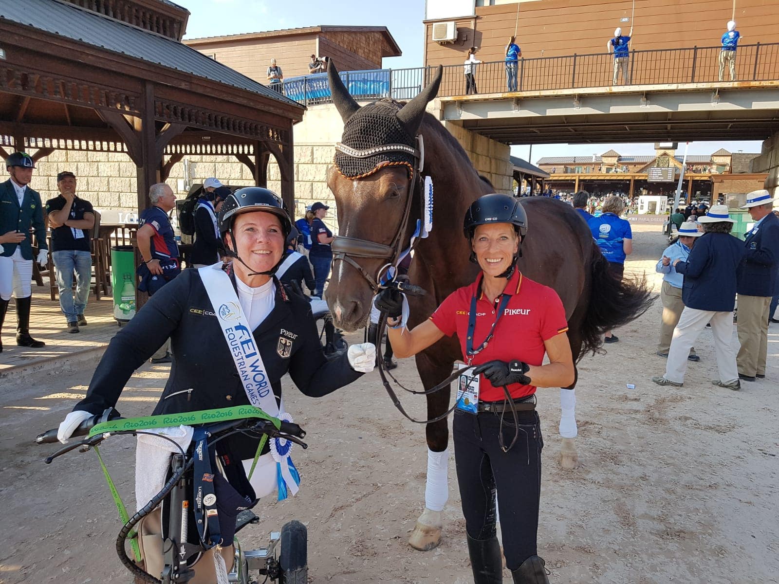 「自分のできる最高の演技をめざし、精いっぱい演技するしかなかったです。Rixtのスコアを知っての演技だったので、それを越えなければならないとわかっていました。なんといっていいかわかりません。まだ震えています。この馬は本当に素晴らしかった、素晴らしいとしか言えません。本当に、本当に、誇りに思います。(コーチの)リサが隅角をきっちり通らないとだめ、それができたら中間速歩がきちんとできる、そう言っていて、今日はずっと良くなった気がします。入ったときから馬に自信があるように思えました。