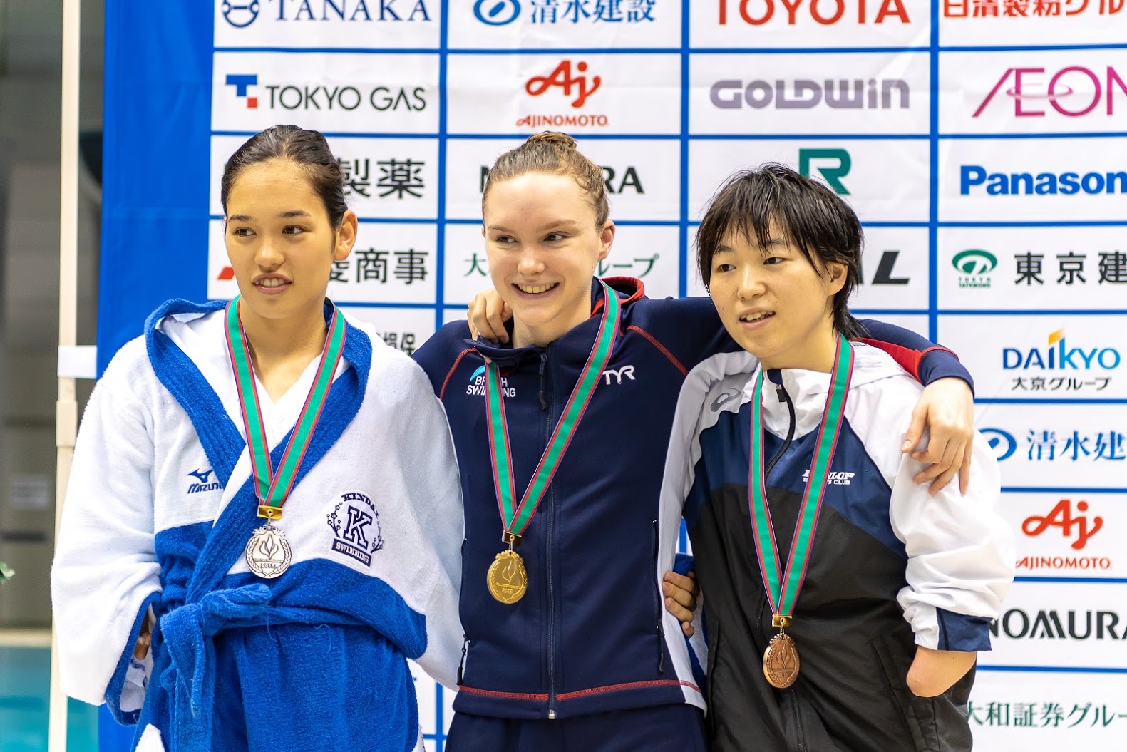 辻内は今大会、4種目で優勝。100m平泳ぎでは日本新記録も樹立した。
