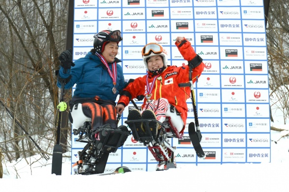 そんな中で、今シーズンで初めて日本代表いりした村岡桃佳(16歳・深谷高校2年)が、先輩の大日方邦子を上回る合計タイム02:05.56で1位となり、成長ぶりを披露した。