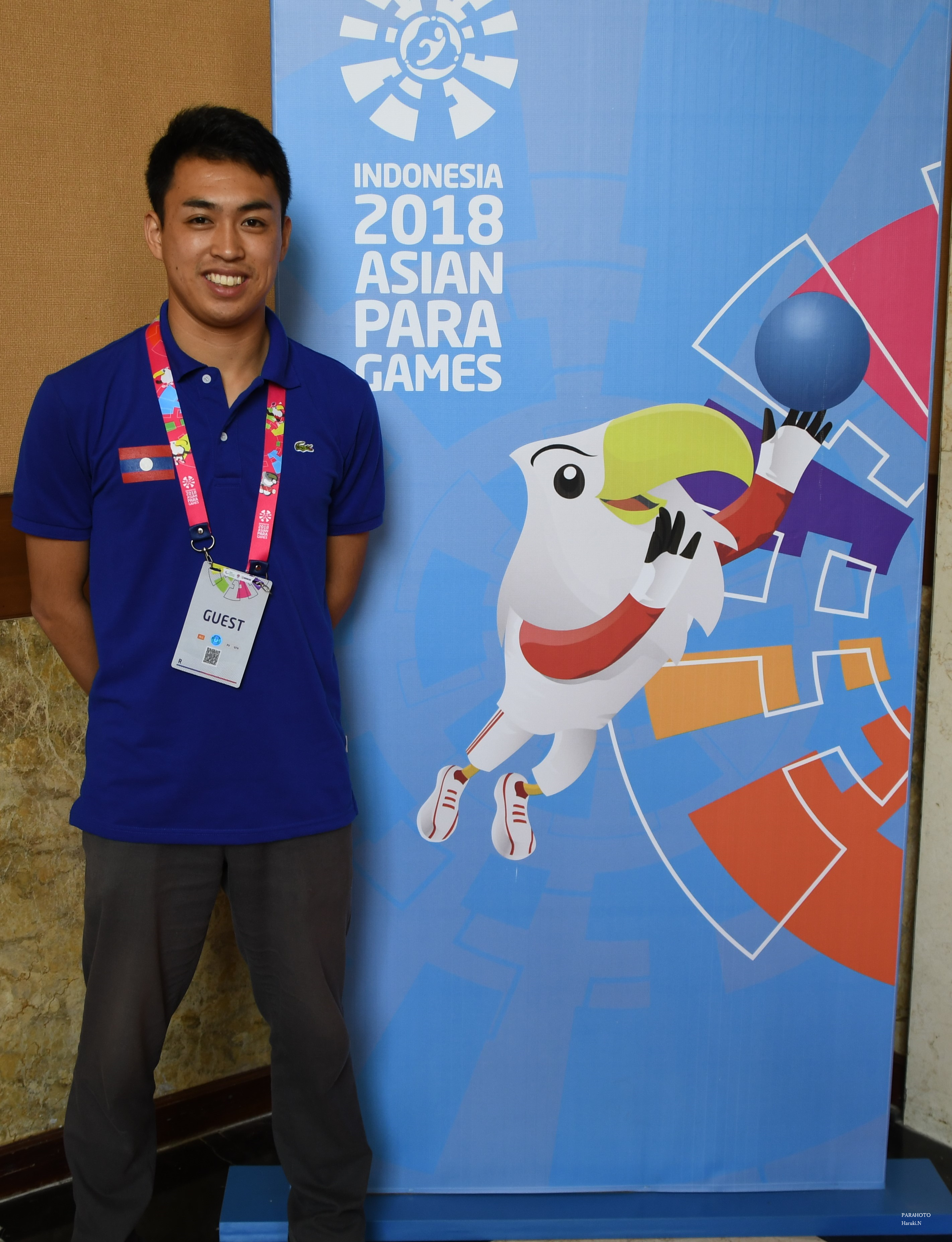 2018アジアパラ競技大会、パワーリフティング男子49kg級金メダリスト、ラオパックディ・ピアのサポートもしている。