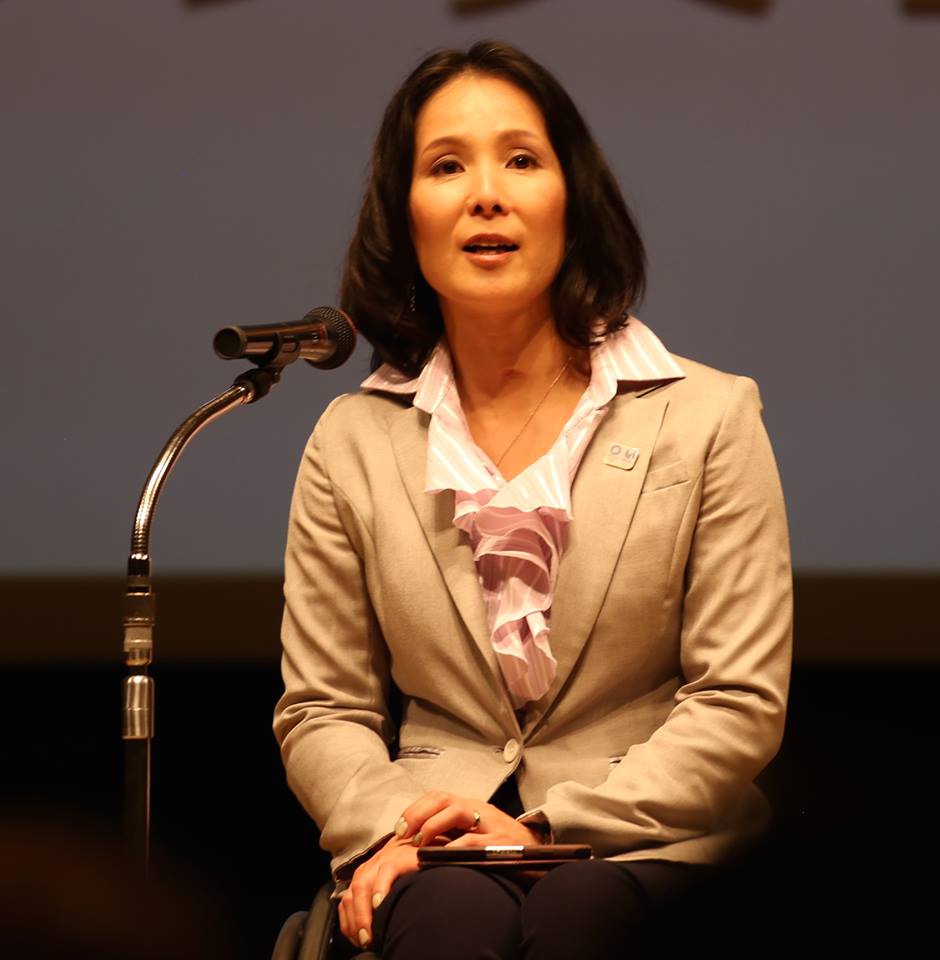 オープニングの挨拶で、田中 晃代表取締役社長が「パラリンピック東京大会の成功と日本社会の成長に貢献する目的で、企業・団体・メディア・自治体・町内会等でWHO I AMを活用いただきたい」と語ると、続いて来賓挨拶に立った長野パラリンピック金メダリストでIPC教育委員メンバーであるマセソン美季さんが「2020年後も盛り上げるべく、子どもたちからファンを増やすため、教育教材として一緒に何かできないだろうか」と連携強化にラブコールを送った。