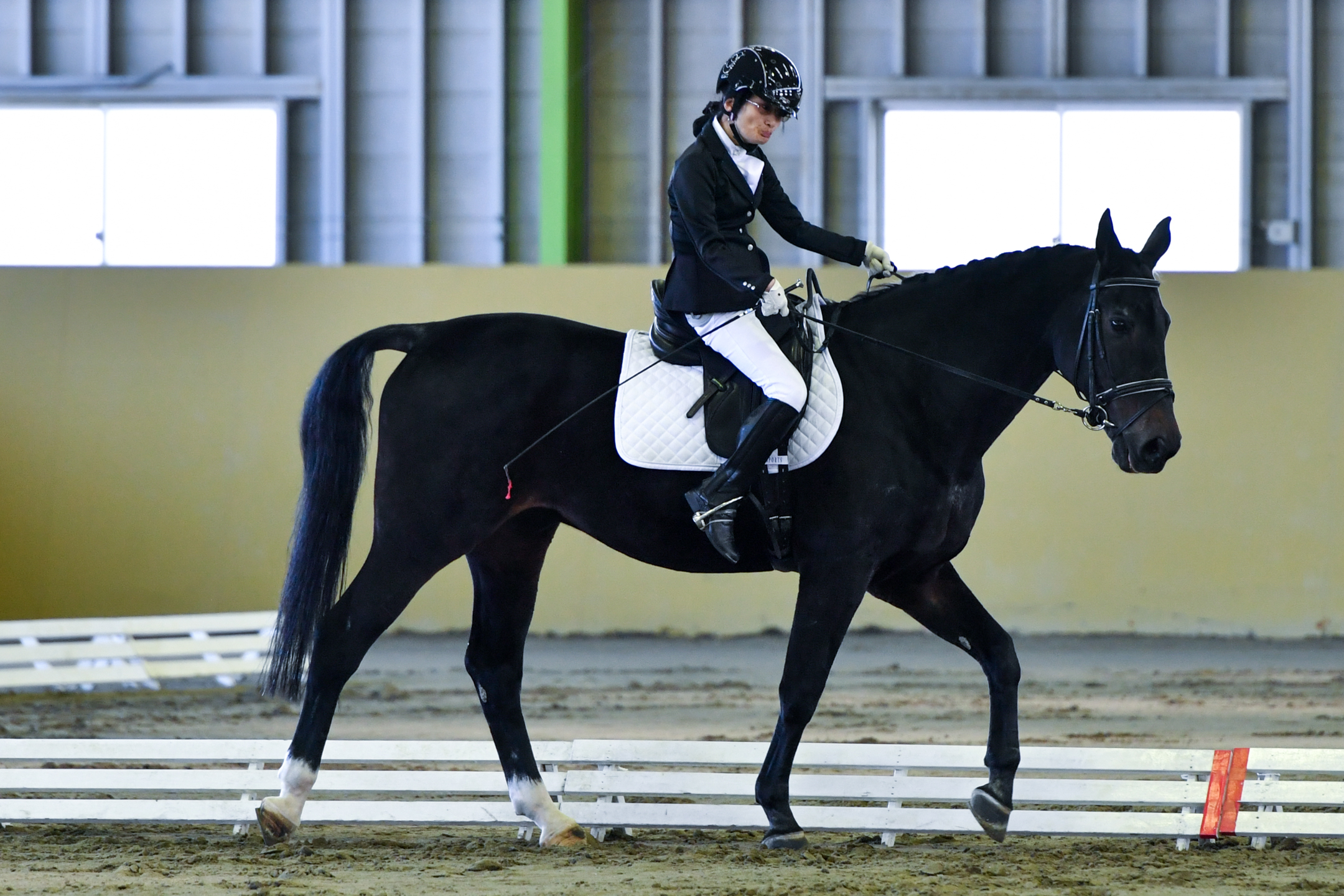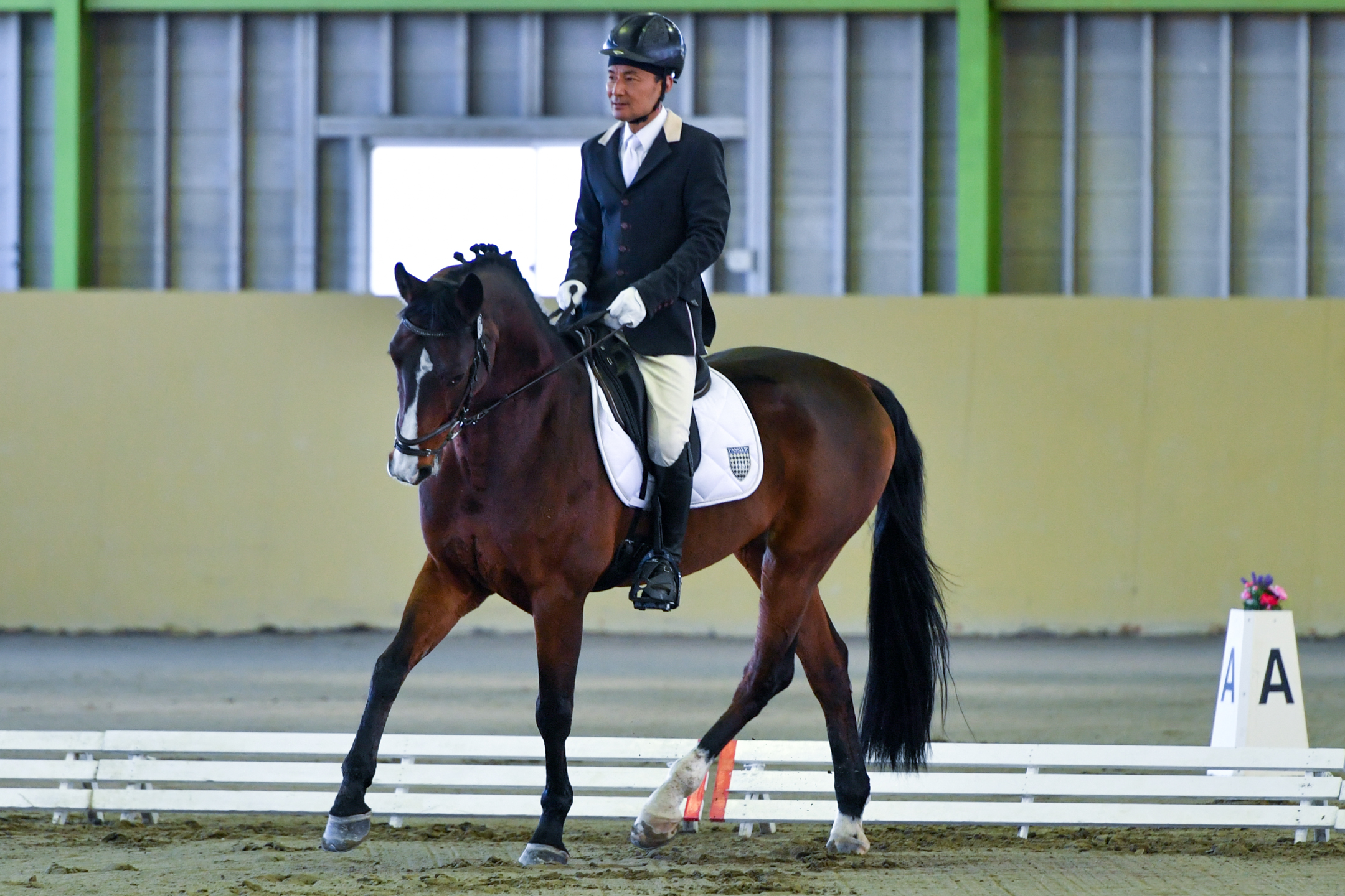 「今回2頭で出場しましたが、両方とも試合に一緒に来たのは初めてなので、どれぐらい点数を取れるかな、と思っていました。成績が良かった方のピエノは、コンビを組んでわずか10日、2週間弱でこの成績が出たのは今の段階ではまあよかったかな、と思います。また1か月ほどすると三木で試合*があるので、もっとよくなるように頑張ります」