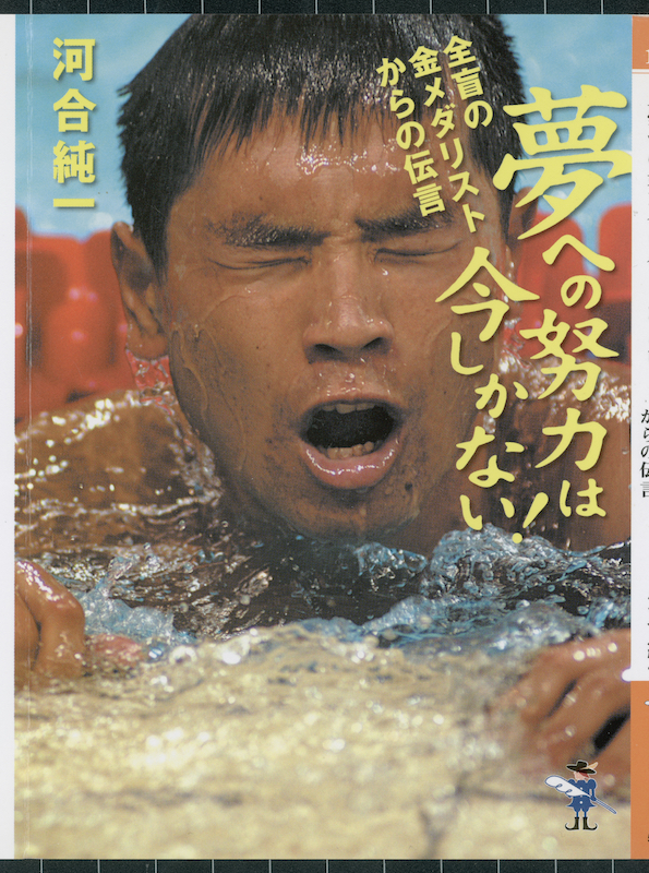 ーーこの写真は全盲の金メダリスト河合純一の書籍「明日への努力は今しかない!」の表紙に使われたもの。当初は、メダルを掲げているきれいな写真を選んでいた。河合選手の奥さんや編集者がこれがよいと。インパクトや、本のタイトル「明日への努力は今しかない!」を踏まえると、たしかに、この写真がよかったかもしれない。反対はしませんでした。(筆者は、当時写真の表紙の選定の窓口となった当時を振り返る。)