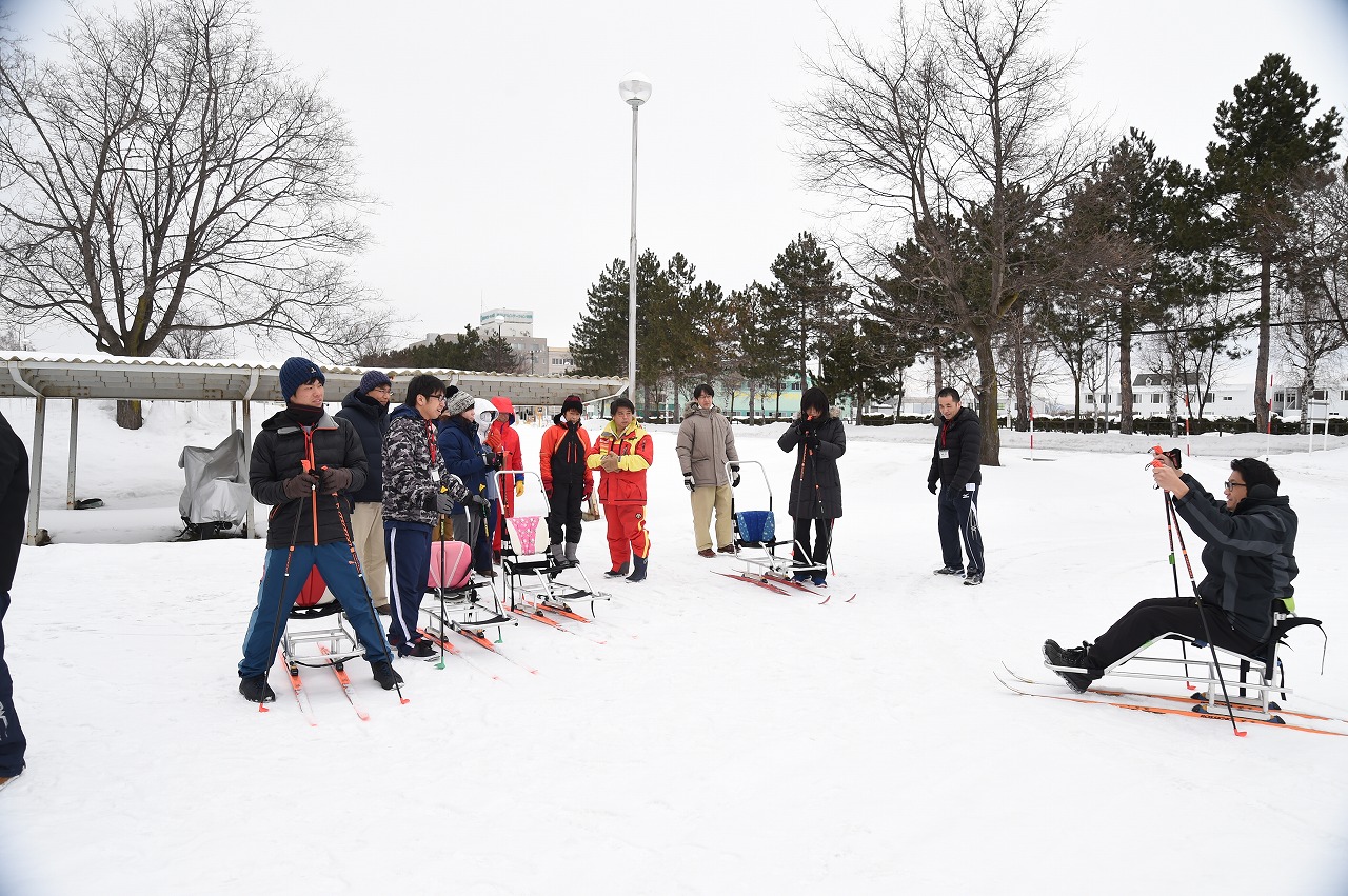 分科会は、障害者とスポーツ全般に携わる人にとって関心の高いテーマで行われた。第6分科会を担当した講師の泉谷昌洋さん(日本障害者スキー連盟)は、「シットスキー」「ローラーシット」で地元の人々を募って体験会を行い、全国からの指導者を交えた旭川の障害のある人ない人との交流の現場を再現。旭川らしさも体験してもらうため、雪の屋外での体験にもこだわって進めた。各地からのパラスポーツ指導者と地元市民との障害のあるなしを超えた交流が図られた。