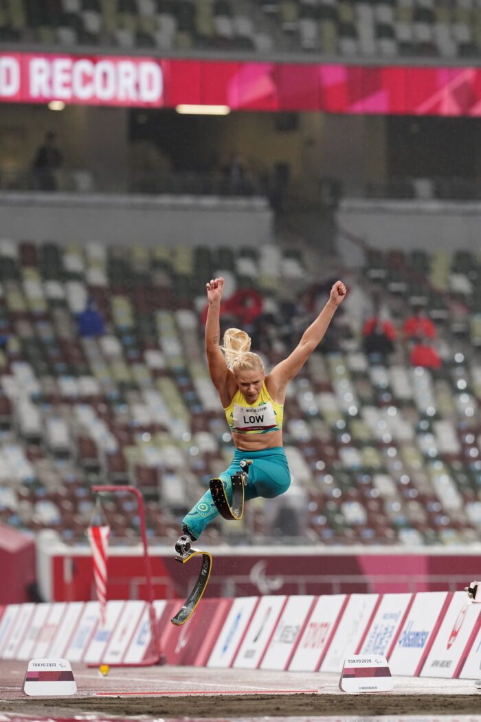 東京パラリンピック、陸上競技7日目の9月2日。この日、世界新記録をマークしたのは、女子走り幅跳び(T63)決勝に出場した両脚義足のバネッサ・ロー(T61/オーストラリア)。同種目に出場する選手の中で障害の重いクラスでありながら、最終跳躍で5m28をマークし、金メダルに輝いた。