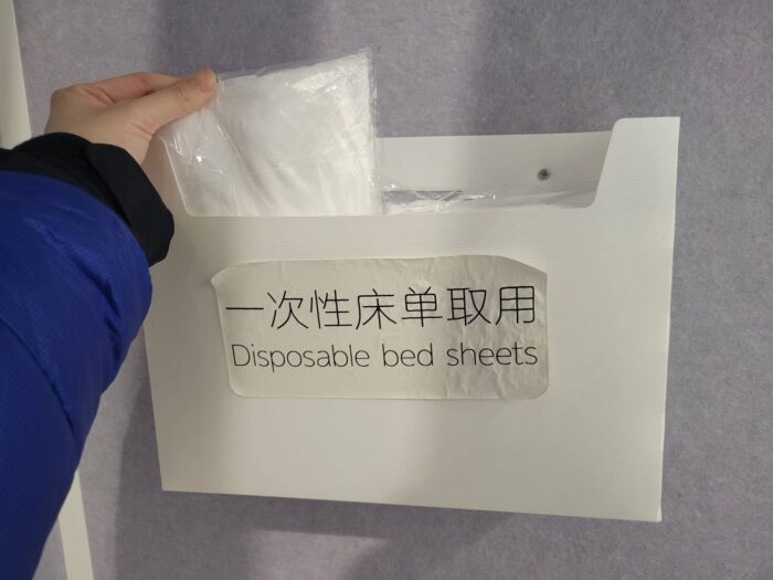使い捨てシーツはあるが、布団はない。私は持ってきていたダウンコートをかぶって寝ることにした。