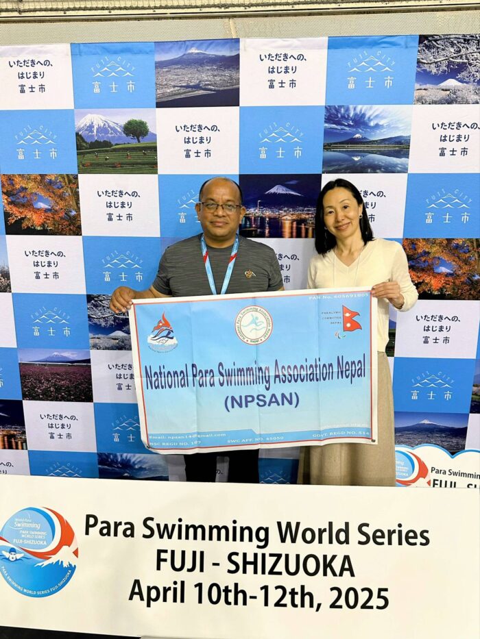 「パラ水泳ワールドシリーズ富士・静岡2025」に出場するため、ネパールパラ水泳協会会長Saroj Shrestha氏と、男女2名の選手が来日した。来日間もない4月6日、オンラインでインタビューを行い、現地での遠征の様子を見守った。