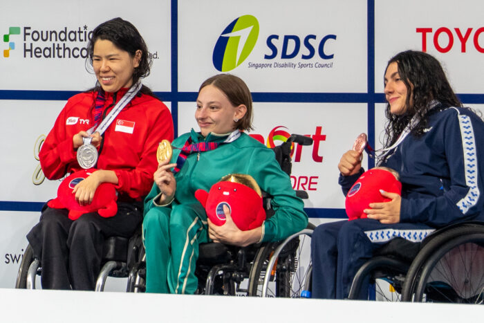 地元のヒロイン、世界記録保持者のイッピンシューがメインの女子100m背泳ぎS2に出場。優勝を期待されており、予選では1位となったものの、決勝でロシアのダイアナ・コルツォワ(KOLTSOVA Diana/NPA)選手に敗れた。アジアパラへの参加の可能性は「状況による。日本での大会は素晴らしいものになるでしょう」と話していた。