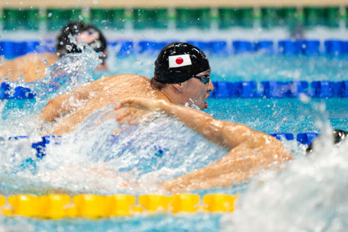 齊藤元希(スタイル・エッジ)は、これまでほぼ毎日3種目の個人種目に出場してきたが、この日はリレーも加わり、1日で合計4レースを泳いだ。