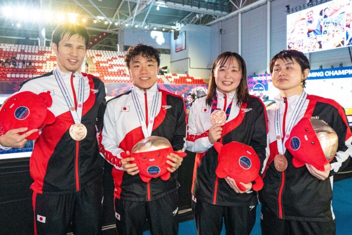 日本チームは、混合4×100m自由形リレー(49ポイント)で銅メダルを獲得した。大会開幕から6日間、途切れることなくメダルを手にする快挙となった。出場したのは、2日前のメドレーリレーと同じ木村敬一、齊藤元希、石浦智美、辻内彩野の4人。優勝したスペインに13秒08差で続き、3位に入った。